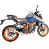 Pure Performance for the New Generation The 2024-2025 390 Duke is built for agility, and this 200mm "Shorty" system is the ultimate tool to enhance that character. By deleting the heavy, restrictive factory pre-silencer and catalytic converter, this system provides an unrestricted exhaust path. This allows the 399cc LC4c engine to rev more freely, significantly improving throttle response and reducing the heat soak often experienced with the stock underbelly setup. Aggressive Racing Sound This 200mm system is for the rider who wants to be heard. As the shortest silencer in the range, it offers the most aggressive acoustic profile available: The Note: Expect a crisp, mechanical, and loud racing "thump" that perfectly matches the Duke's hooligan nature. The Experience: It delivers a raw, unfiltered sound at high RPMs, making every gear shift feel like a track session. Baffle System: While loud by nature, it includes a removable DB Killer to help take the edge off for early morning starts or city commuting. Premium Materials & Lightweight Design Brushed Stainless Steel: The silencer body is crafted from high-grade 304 Stainless Steel, left in a classic brushed finish that complements the Duke’s industrial, naked-bike styling. Carbon Fiber End Cap: A genuine, hand-laid carbon fiber tip provides a high-end finish and acts as an effective heat shield at the exhaust exit. Maximum Weight Savings: This is one of the lightest systems on the market, shedding approximately 5kg to 6kg compared to the OEM assembly, drastically improving the bike's power-to-weight ratio. Engineering & Compatibility Direct Fit: Precision-jigged for the 2024-2025 chassis and swingarm layout. Electronics Ready: Includes the necessary O2 sensor bungs to accommodate the stock Lambda sensors, ensuring the bike maintains its smooth fueling without "Check Engine" lights. Lean Angle: The compact oval profile ensures zero interference with the rider’s boots or the ground, even under extreme lean angles.