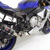 Upgrade your Yamaha YZF-R1 / R1M with this Black Widow de-cat exhaust system built for track-level performance and loud character. The stainless steel de-cat collector removes catalytic restriction, allowing maximum exhaust flow and sharper throttle response. Paired with a 200mm oval black stainless silencer, it produces an extremely aggressive and loud race-style exhaust note. High-grade stainless steel construction ensures durability, heat resistance, and long-term reliability under high RPM use. The carbon fibre tip enhances the stealth aesthetic with a premium lightweight racing finish. Complete system includes de-cat collector, silencer, link pipe, and mounting hardware for direct fitment on 2015–2025 models.
