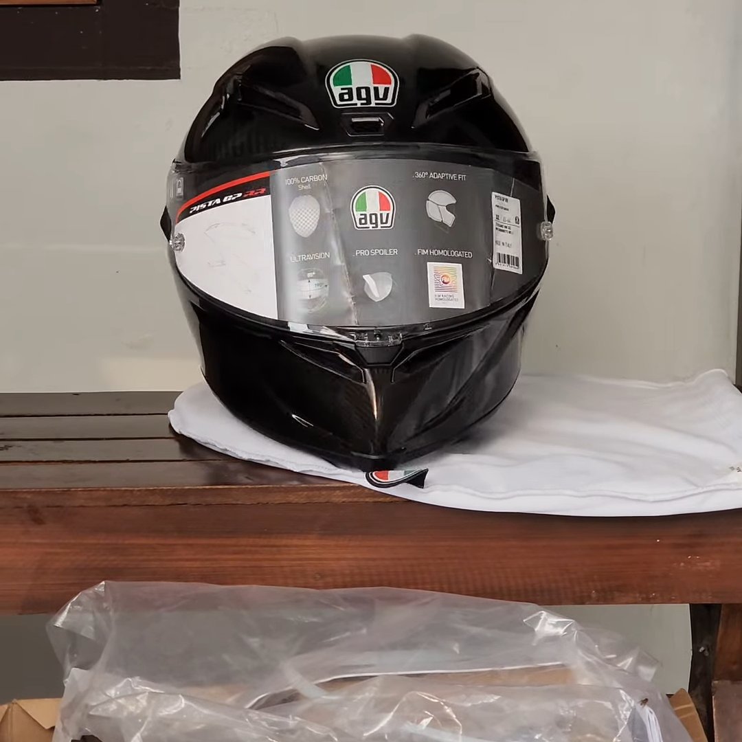 Brand new , Full box with accessories Pista GP RR is an exact replica of the AGV helmet used in races by world champions. It has therefore received the new FIM homologation, which certifies the highest possible level of protection, even against any dangerous twisting of the head. Due to the exclusive AGV Extreme Safety design protocol, Pista GP RR already exceeds the requirements of the strict ECE22.06 homologation. Every detail is designed to ensure ultimate performance. The Extreme Carbon shell in 100% carbon fiber guarantees extraordinary lightness, which makes it effortless to wear. Its shapes and metal air vents are studied in the wind tunnel and tested by AGV athletes in order to ensure the best aerodynamic penetration and the greatest stability at high speeds, also due to the innovative profile of the rear PRO Spoiler. Boasting 5 mm thickness, the optical class 1 Ultravision visor is an integral part of the protector that allows 190° panoramic vision, and 85° vertical vision. This means the rider sees the track, adversaries, and obstacles more clearly, before anyone else, even in racing position tucked into the frame. The exclusive 360° Adaptive Fit system allows for complete customization of the interior, giving the rider the possibility to select the ideal thickness for the upper part of the head, nape, and cheeks. This essential level of comfort leaves the rider free to concentrate on nothing but their goal.