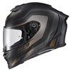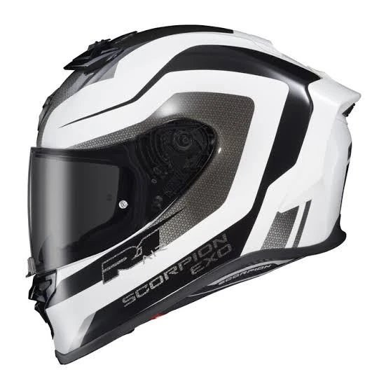 The EXO-R1 Air Helmet reigns as the Scorpion's premier track-spec helmet. Tested and refined on the racecourse, the EXO-R1 Air brings a host of winning features to all styles of road riding. Debuting the Ultra-TCT shell, the EXO-R1 Air utilizes a unique blend of fiberglass that promises high strength, low weight and leading impact dispersal. The shape of this helmet has been tuned aerodynamically for reduced drag and lift. Scorpion has added a central locking mechanism to the face shield, which compliments their proprietary Ellip-Tec ratcheting hinge system - to guarantee an uncompromising seal at even the highest speeds. On the inside, a multi-density EPS liner with channels to guide airflow is fed from a large ram-air intake vent at the front and aided by four exhaust ports at the rear. Scorpion's AirFit system enables a uniquely customized fit for improved comfort and noise isolation. A dark smoke pinlock-ready face shield is included in the box along with a pinlock anti-fog insert. Worn by Quartararo in MotoGP and Bautista in World Superbike, the EXO-R1 Air is ready for your favorite piece of tarmac. Features: Multi-layered Ultra-TCT shell combines fiberglass, aramid and poly-resin fibers to minimize weight and maximize strength and impact dispersal Aero-tuned shell helps reduce aerodynamic drag, improve balance and maximize mobility Three shell sizes Advanced multi-layer EPS provides superior energy absorption and channels for increased airflow Ram-air intake system with 4 port exhaust spoiler system and EPS channels for an optimal flow-thru effect Optically superior clear MaxVision pinlock-ready face shield installed Anti-scratch shield coating and 95% UV-A & UV-B protection Includes dark smoke MaxVision pinlock-ready face shield Pinlock anti-fog insert included Elliptec II quick-release face shield mechanism with integrated center lock for superior shield-to-gasket seal Removable / washable KwikWick III anti-microbial interior keeps you cool, dry and comfortable AirFit inflation adjustment system between the cheek pads and shell provides a custom fit reducing wind noise and lift 3D contoured Kwikfit cheek pads with eyeglasses channel EMT-friendly emergency release cheek pads Integrated speaker pockets to accommodate Bluetooth communication system speakers Breath deflector included for enhanced fog-free performance Aero skirt chin curtain included to help reduce wind noise Titanium double D-ring closure DOT / ECE 22.06 approved